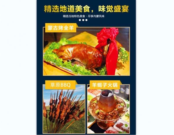 4:蒙古烤全羊、草原BBQ、羊蝎子火鍋等特色餐全含,讓您盡享內(nèi)蒙美食。