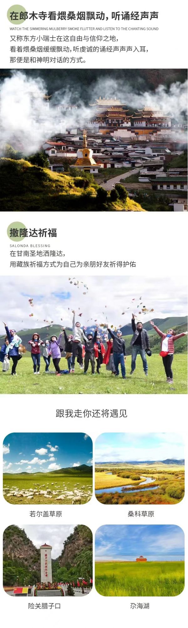 請對應(yīng)使用我方秘境甘南7日行程,因使用其它行程造成的投訴,責(zé)任自負(fù);請仔細(xì)閱讀以上行程文檔,同意并保證遵守我方安排,以免為您帶來不必要的麻煩;如產(chǎn)生合同糾紛或人身意外事故,按《中華人民共和國合同法》、《道路交通法》、《保險賠償條例》裁定;本行程作為旅游合同附頁與旅游合同同等法律效力。