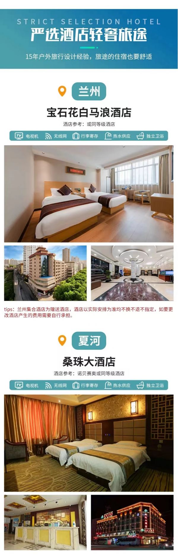 tips:蘭州集合酒店為贈送酒店,酒店以實(shí)際安排為準(zhǔn)均不換不退不指定,如要更改酒店產(chǎn)生的費(fèi)用需要自行承擔(dān)。