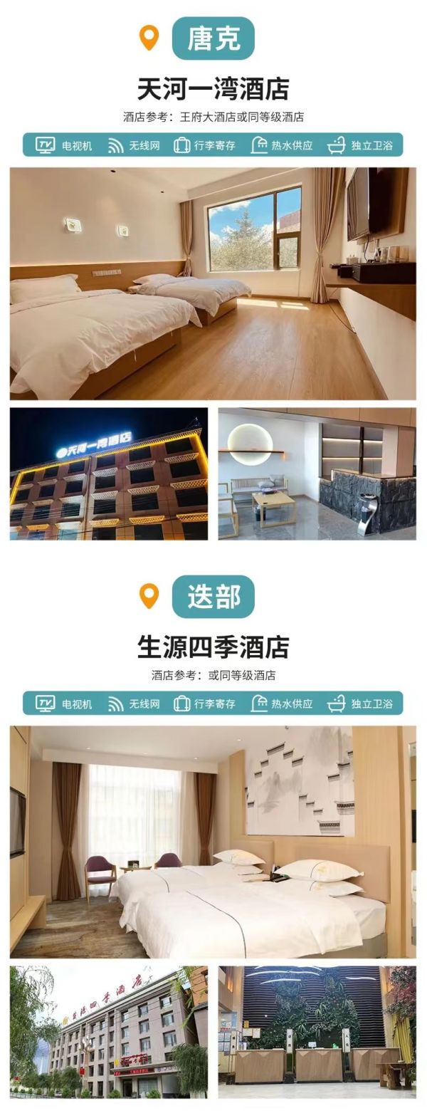 住宿:6晚當(dāng)?shù)厥孢m酒店,確保酒店干凈衛(wèi)生,溫馨舒適。因沿途高原藏區(qū)條件有限,如果酒店設(shè)施沒有達(dá)到您的期望,敬請諒解。參考酒店如下: