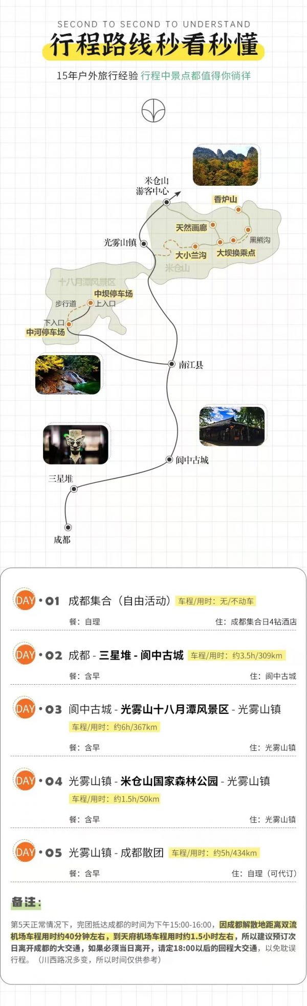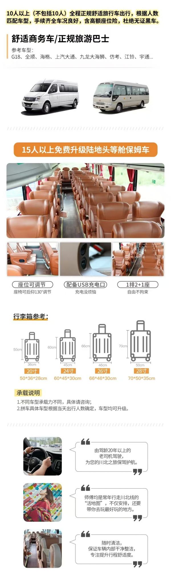 (2)正常情況下,抵達成都的時間為下午15:00-16:00,如果必須當日離開,請定18:00以后的回程大交通,以免耽誤行程,敬請諒解;