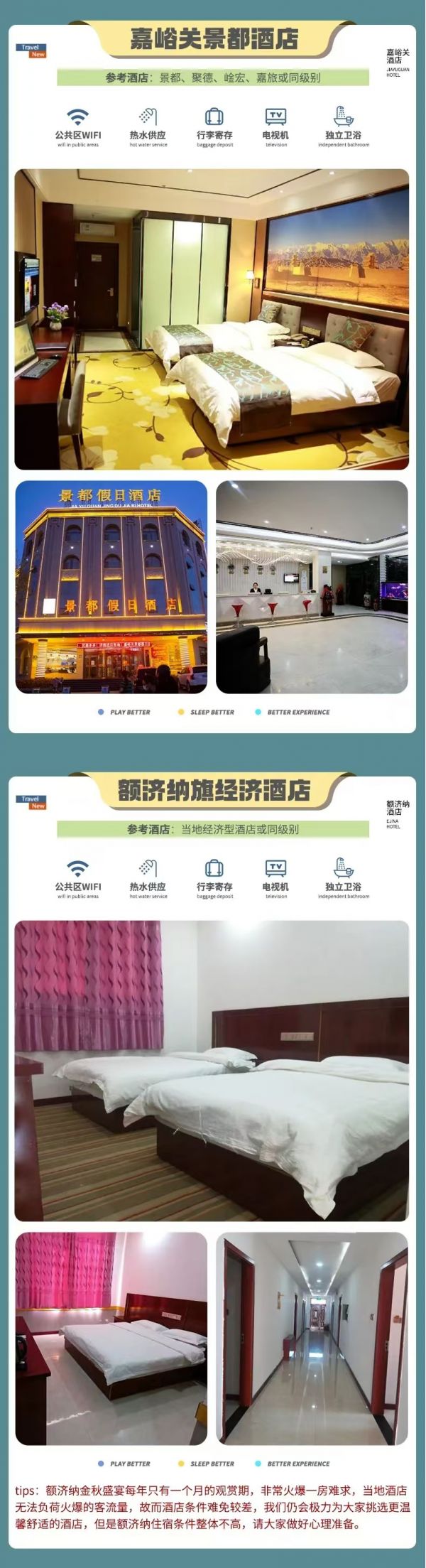 3. 額濟(jì)納金秋盛宴每年只有一個(gè)月的賞味期,全國各地的游客蜂擁而至,小鎮(zhèn)各項(xiàng)資源過載,當(dāng)?shù)夭粩嗤晟破渑涮踪Y源但基礎(chǔ)設(shè)置仍較薄弱,請(qǐng)大家以平常心對(duì)待。
