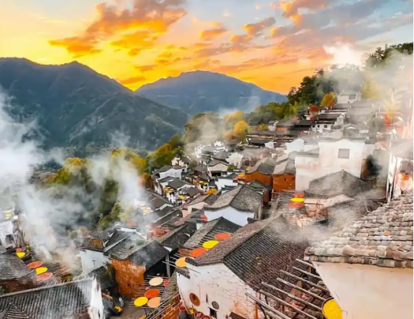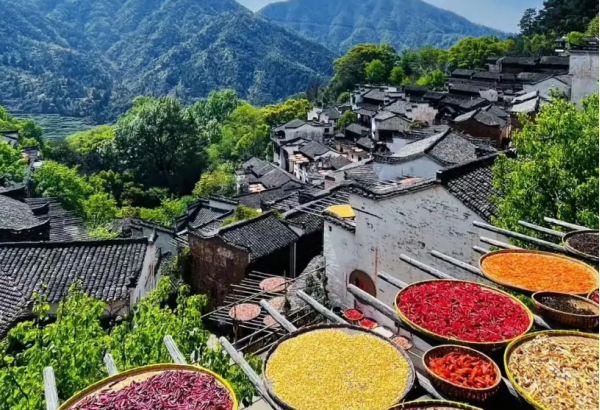 來到嶺腳村,拍攝嶺腳村的古民居和古道。嶺腳村是徽饒古道的起點,古老的石板路蜿蜒穿過村莊,可以拍攝村民在古道上的行走場景,以及古道兩側的田園風光。