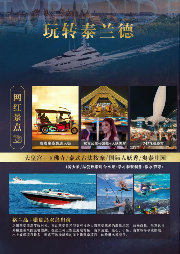 泰國當地有各類特色另行付費娛樂項目,泰國當地導游會為客人推薦自費項目,客人可根據自己興趣自愿選擇。當 地導游推薦的自費秉承自費自愿的原則,如有導游強迫自費或者客人對自費存在異議請在團上向領隊提出并在第一 時間協商處理。如客人當時未提出異議并參加了自費項目,在本次行程結束后旅行社不接受任何關于自費的投訴并 不承擔任何責任。請知悉。