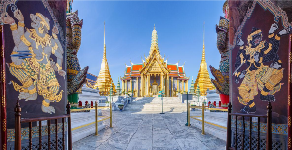 【大皇宮+玉佛寺】(皇宮+玉佛寺不少于 1.5 小時),又稱大王宮,是泰國(暹羅)王室的皇宮。緊鄰湄南河,是曼谷中心內一處大規模古建筑群(計 28 座),總面 積 218400 平方米。大皇宮始建于 1782 年,經歷代國王的不斷修繕擴建,終建成現 在這規模宏大的大皇宮建筑群,至今仍金碧輝煌。大皇宮是仿照故都大城的舊皇宮 建造的,大皇宮是泰國諸多王宮之一,是歷代王宮保存最完美、規模最大、最有民 族特色的王宮。玉佛寺位于曼谷大王宮的東北角,是泰國最著名的佛寺,也是泰國三大國寶之一。玉佛寺是泰國佛教最神圣的地方,是查庫里王朝的守護寺和護國寺,建于 1782 年的玉佛寺是泰國大王宮的一部分,面積約占大王宮的 1/4。玉佛寺是泰國王族供奉玉佛像和舉行宗教儀式的場所,因寺內供奉著玉佛而得名。
