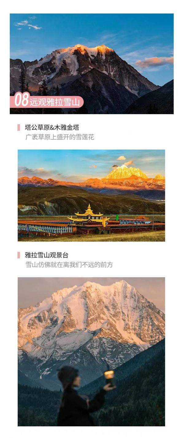 甲居藏寨 - 雅拉雪山觀景臺 - 墨石公園 - 塔公草原 - 瑪尼河谷 - 雅江