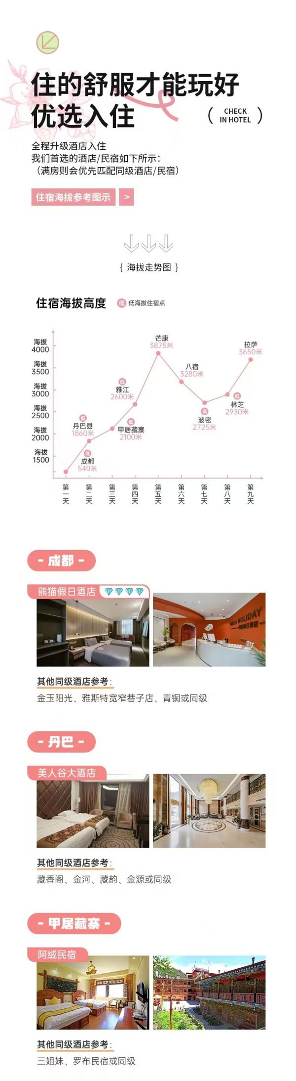 海拔說明:1860m—3060m—3500m—3730m—4200m—2530m