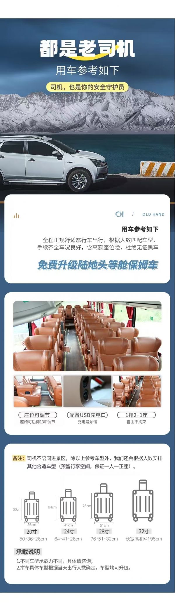 注意事項:出發前一天晚上18:00-22:30通知接你的具體時間,請務必保持電話暢通(接早的時間根據師傅線路決定,為保障整個團隊的順利出行請注意配合時間安排,感謝理解)