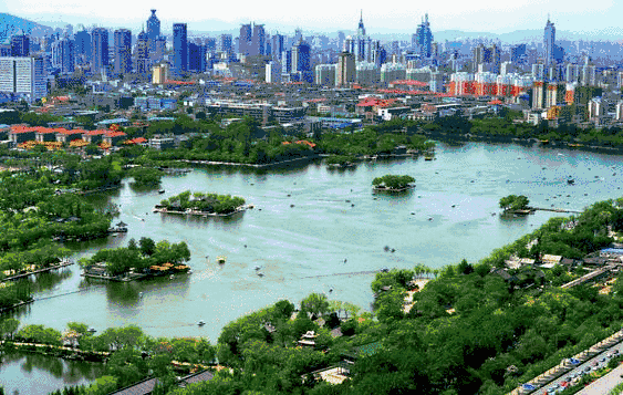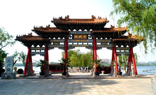 大明湖是濟南三大名勝之一,是繁華都市中一處難得的天然湖泊,也是泉城重要風景名勝和開放窗口,聞名中外的旅游勝地,素有“泉城明珠”的美譽。它位于濟南市中心偏東北處、舊城區北部。大明湖是一個由城內眾泉匯流而成的天然湖泊,面積甚大,幾乎占了舊城的四分之一。市區諸泉在此匯聚后,經北水門流入小清河。現今湖面46公頃(690畝),公園面積86公頃(1290畝),湖面約占百分之五十三,平均水深2米左右,最深處約4米。
