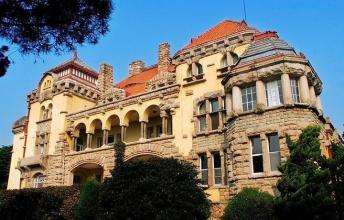 青島花石樓坐落于八大關景點南端的岬角,背靠八大關,面臨第二海水浴場,風景獨特,環境優美。花石樓 建于1930年,外墻由花崗巖石砌筑,塔樓頂部為雉堞式女兒墻。是一幢融合了西方多種建筑藝術風格的歐洲古堡式建筑,既有希臘和羅馬式風格,又有哥特式建筑特色。