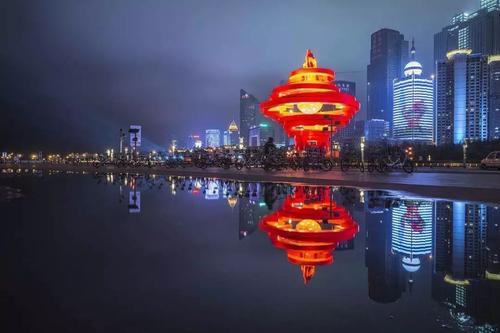 標志性雕塑“五月的風”,以螺旋上升的風,造型是火紅色,體現了“五四運動”反帝、反封建的愛國主義基調和民族力量。這里已成為新世紀青島的標志性景觀之一。由于眷沿東海路從廣場中間橫貫而過,五四廣場被分為南北兩區,北區連接青島市人民政府,是中心廣場。南區瀕臨浮山灣,為區兩欣海濱公園。禹召默北部踩具的毗淘中心廣場地勢平坦,廣場中間為篷棕平整、開闊篩眉實的大片綠色草坪。廣場斗甲謝四周和草坪之間憂例用青島優質花崗巖癮緊鋪砌了各種精致的嘴尖圖案,中心設計了一座圓形噴泉。廣場東西殯戴遂兩側為高層建筑。