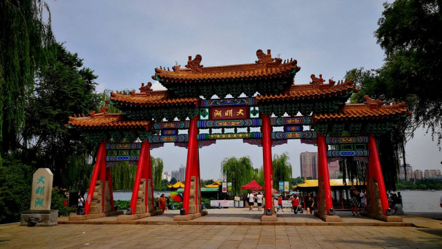 后前往大明湖,自由游覽。大明湖,山東省濟南市區湖泊、濟南三大歷史名勝之一。位于山東省濟南市歷下區舊城區北部,是由濟南眾多泉水匯流而成,湖水經濼水河注入小清河。湖水面積46公頃,水深平均2~3米。大明湖景色優美秀麗,湖水水色澄碧,是國家5A級旅游景區——天下第一泉風景區的核心組成部分之一。大明湖歷史悠久,紀念古人政績、行蹤的建筑以及自然景觀很多,諸如歷下亭、鐵公祠、小滄浪、北極閣、匯波樓、南豐祠、遐園、稼軒祠等,引得歷代文人前來憑吊、吟詠。唐代以后的歷代詩人,都留下了著名的詩篇。
