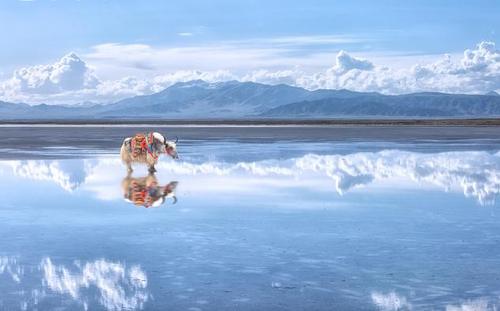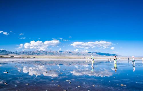 早餐后,我們來到被國家旅游地理雜志評為“人一生必去的55個地方”之一的【茶卡鹽湖】。這里的采鹽歷史非常悠久,湖水含鹽量很大,湖面上會自然結晶,一片純白。結晶之上是一層薄薄的露水,將天空、云朵和對岸的山都倒映在白色的湖里,非常漂亮,所以也被稱為“中國的天空之境”。大家可以乘坐景區(qū)內的小火車前往景區(qū)深處游玩,如果不乘坐小火車,沿著鐵軌向湖深處散散步拍拍照片也是非常愜意的。