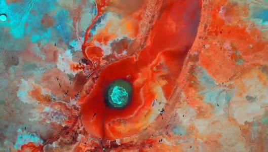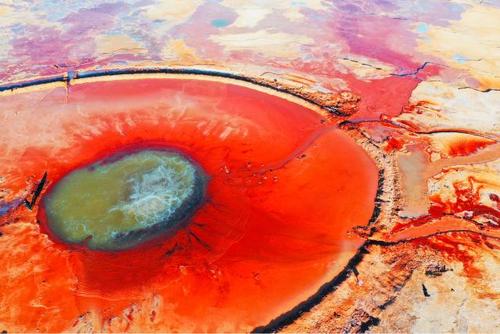 艾肯泉位于青海省海西蒙古族藏族自治州茫崖市花土溝鎮(zhèn)莫合爾布魯克村,被稱為“大地之眼”、“惡魔之眼”。 艾肯泉直徑有10多米,泉眼如同沸騰的開水,不斷翻滾上涌,泉眼周圍硫磺礦物質長期沉淀,色彩斑斕。從空中俯瞰,泉眼與噴涌出的泉水以及周圍土地上深紅色環(huán)帶狀的沉淀物,組成了一個奇特的瞳孔造型,仿佛一只鑲嵌在大地上的眼睛。