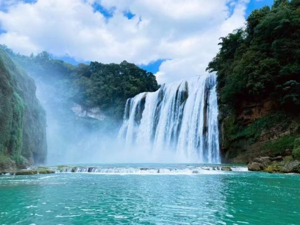 之后游覽亞洲最大,貴州必游景點【黃果樹瀑布】(不含黃果樹景區內扶梯單程30元/人,往返50元/人,屬不必須消費項目,自愿消費),游覽不少于2H;黃果樹大瀑布寬101米,高77.8米,是世界上唯一可以從上、下、前、后、左、右六個方位觀賞的瀑布,峭壁震顫,谷底轟雷,十里開外也能聽到它的咆哮,濺起的水霧可彌漫數百米以上。【水簾洞】從其腰間全長貫通,是1986版西游記水簾洞取景處,能從洞內外聽、觀、摸瀑布,潔白的水簾飄然而下,揚揚灑灑,如綢緞飄舞,如仙袂飄舉,如淑女浣紗,觀【犀牛潭】,感受瀑布之壯美,品大自然之奇妙。