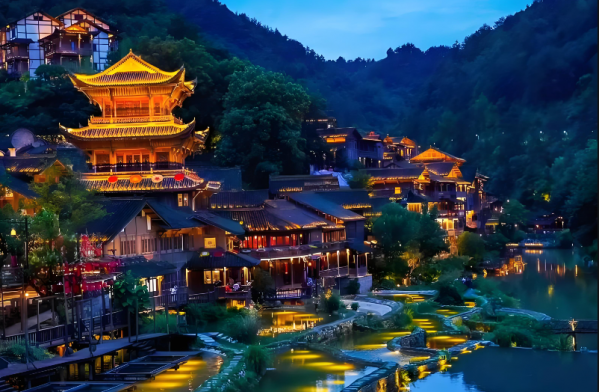 下午:午餐后乘車前往【烏江寨】國際旅游度假區,車程約2.5H(景區電瓶車已包含,不限次數乘坐),江南千條水,云貴萬重山,一灣烏江碧水飄落在山間,如黛青山擁簇著烏江寨,兩岸吊腳樓錯落有致,滿滿的黔北風情,宛若治愈力拉滿的世外桃源,青山、綠水、吊腳樓、青磚黛瓦、民居、民俗、水舞秀...描繪出一幅黔北民居群落的壯美畫卷,在太乙閣碼頭坐上一艘搖櫓船,穿行在氤氳水汽之間,鱗次櫛比的吊腳樓撲面而來,斜倚船頭,坐看云煙升騰,晨光下的美景猶如一幅水墨畫在眼前暈染開來。景區是集觀光、休閑、度假、康養、會展為一體的大型綜合業態的旅游目的地。景區內辦理入住酒店后自由游覽,晚上景區內可以欣賞震撼壯觀的水舞秀、燈光秀、獨竹飄,無人機編隊表演等。