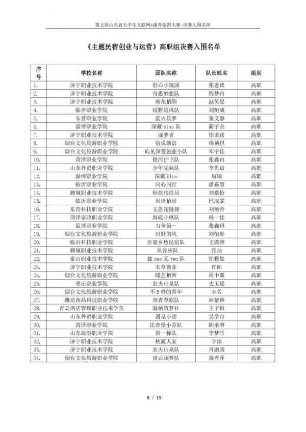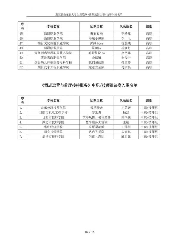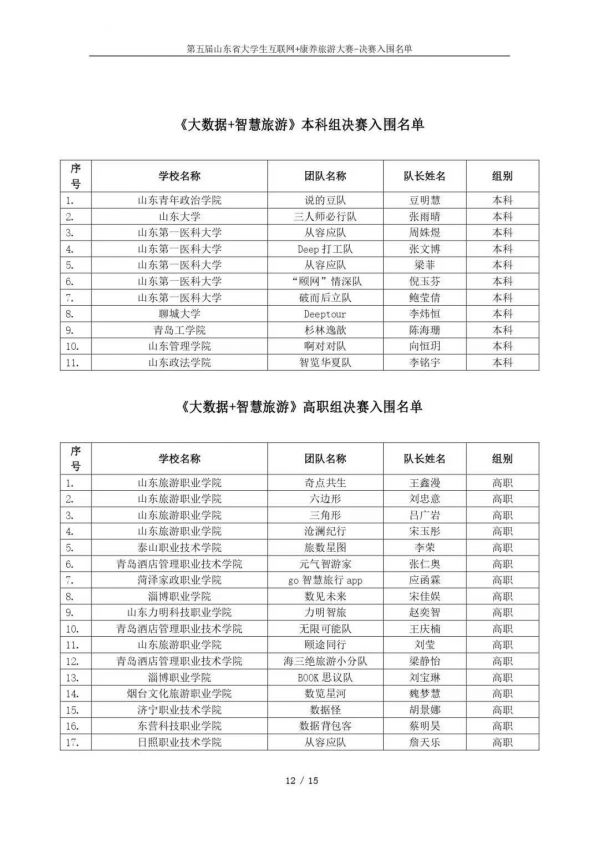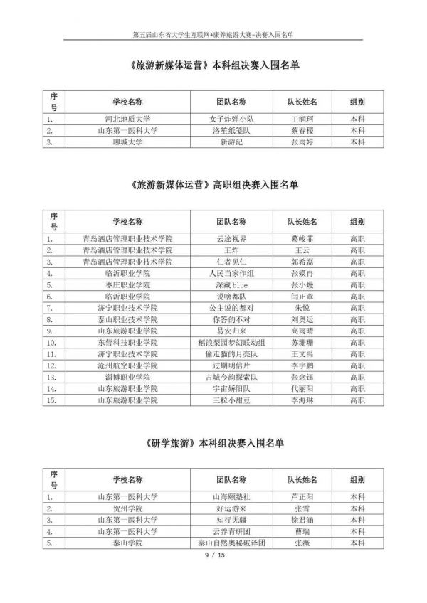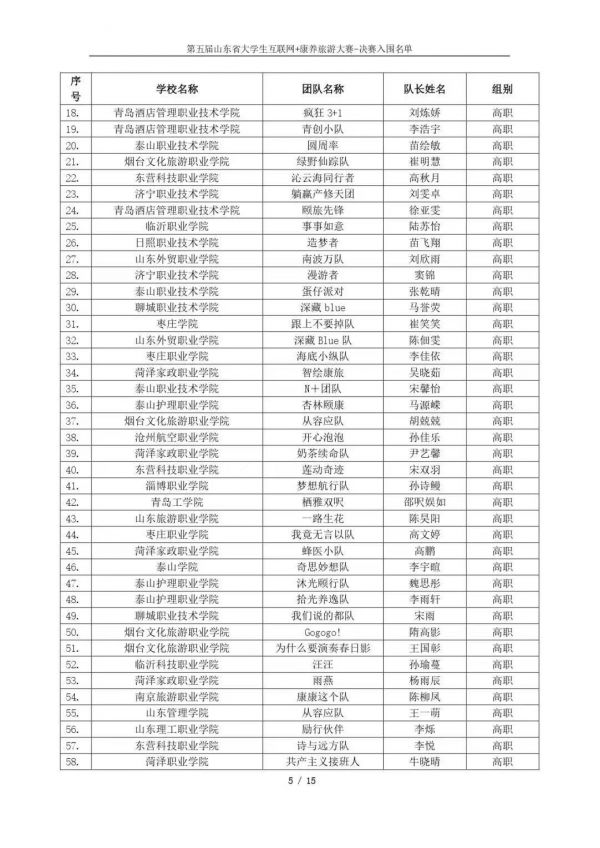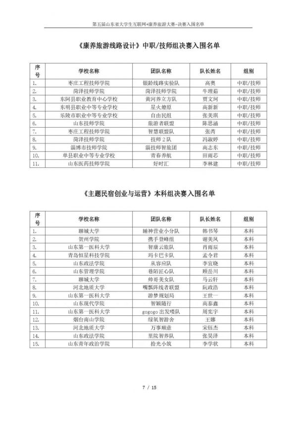 以下鏈接為第五屆山東省大學生互聯網+康養旅游大賽決賽入圍名單公示通知原文件:https://mp.weixin.qq.com/s/bd61lqBY3XZJo0ujX1mO_g?scene=1&click_id=2