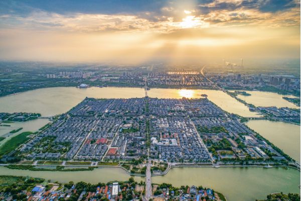中華水上古城即聊城古城—東昌古城,統稱為山東聊城古城。東昌古城坐落在聊城市區內東昌湖中間,北宋時期的城垣。城呈正方形,總面積約100萬平方米。城墻始建于宋熙寧三年(1070),初為土城。明洪武五年(1372),東昌平山衛指揮僉事陳鏞改筑為磚城。城墻周長3.5千米,高11.7米,頂寬6.7米,基厚11.7米。內墻用三合土夯筑,外墻用磚石砌壘。城設4門,上筑門樓,外設甕城。南、東、西甕城為扭頭門,南門東向似鳳頭,東、西門南向似鳳翅,北門北向似鳳尾,故名“鳳凰城”。四城門樓皆重檐歇山,四角飛翹,東曰“春熙”,西曰“清遠”,南曰“正德”,北曰“宣武”。明萬歷七年(1579),城墻上又建垛口2700余個、敵樓27座;4城門樓更名,東曰“寅賓”,西曰“納日”,南曰“南熏”,北曰“鎖鑰”。各個城門均有水門、吊橋。城東北角、西北角原有“望岳”“綠云”2樓。城高大堅固,易守難攻,大有高屋建瓴、睥睨四鄰之勢,又有“能陷不失的鳳凰城”之說。