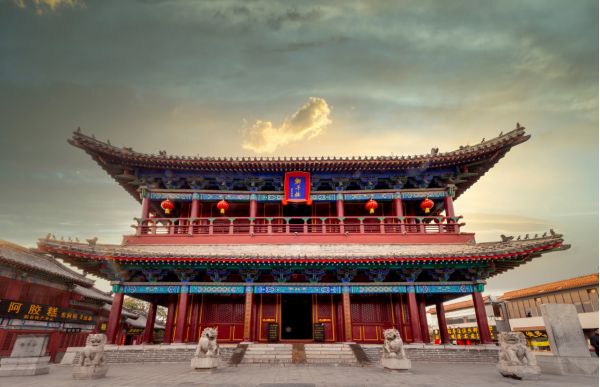 山陜會館,位于山東省聊城市東昌府區東關古運河西岸,系全國重點文物保護單位。山陜會館始建于清朝乾隆八年,即公元1743年,距今己有260多年的歷史。明清時期,京杭大運河帶動了聊城經濟。便利的交通使經濟、文化空前的繁榮昌盛,當時的聊城因此享有“江北一都會”的美譽,來自全國各地的商人使聊城百業興隆,山陜會館就是當時由山西和陜西商人為了“祀神明、聯桑梓”而建立的。