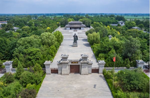 后游覽【蚩尤陵】,蚩尤陵位于山東省聊城市陽谷縣十五里園鎮,是為紀念上古部落首領蚩尤而建的文化遺存,由首級冢與陵園組成。陵園由錢運選規劃設計,占地105畝,中軸線分布陵門、蚩尤銅像(高10.8米)、祭壇等九座建筑 。據《漢書》《史記》等記載,蚩尤戰敗后首級葬于東平郡壽張縣闞鄉。