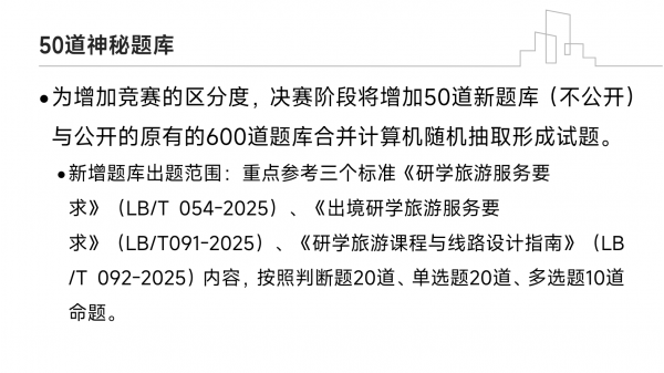 首頁 >> 資訊平臺 >> 劉寶平工作室__Mr. Liu Stu >> 劉老師課堂 >> 大賽指導(dǎo) >> 2025年指導(dǎo)大賽 >> 2025 年全省研學(xué)旅游指導(dǎo)師職業(yè)技能競賽