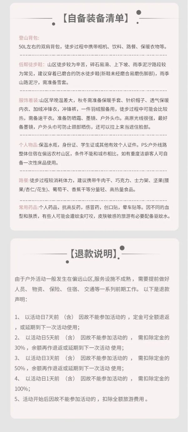 徒步路線較為偏遠,條件有限,主辦方有權根據具體房態進行調整