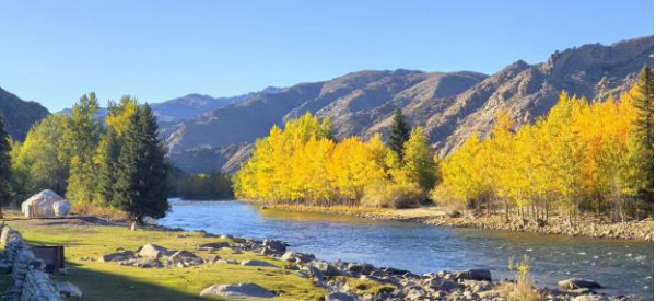 順著額爾齊斯河河谷前行,一座通體由花崗巖構成的奇峰拔地而起,因形似巨鐘倒扣河畔,故而得名“神鐘山”。它巖壁陡峭,秋陽中泛著淡淡的米黃。河水在“石鐘”旁邊蜿蜒流淌,清澈的水波載著搖晃的倒影流向北冰洋。站在觀景臺遠眺,山與水相映成趣,風聲與水聲交織成曲,讓人忍不住放慢腳步,生怕驚擾了這份靜謐。而額爾齊斯河峽谷的秋色更顯磅礴,兩岸的次生林褪去翠綠,換上深淺不一的金與紅,河谷間云霧繚繞時,遠山如黛,近樹似金,宛如一幅流動的油畫,每一筆都蘊藏著大自然的匠心獨運。