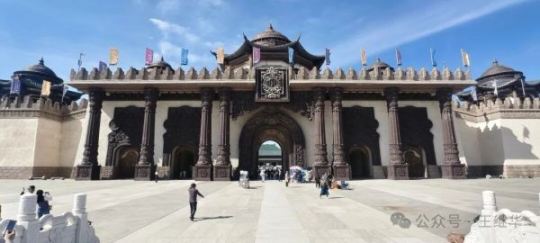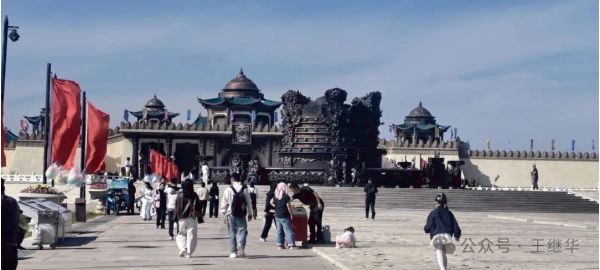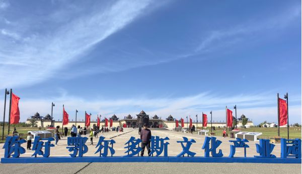 出了成吉思汗陵不遠,便是鄂爾多斯文化產業園。這座碩大的古建筑群,是“十二五”期間自治區鄂爾多斯市確定實施的重點文化產業項目,位于伊金霍洛旗,地處“蒙晉陜寧”四省交匯處,