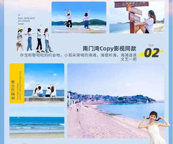 早餐后乘車前往東山島;抵達后前往【南門灣】海灣遼闊、沙灘平緩、綠樹成蔭,極具南國濱海風光特色。這里靜泊在海 上的漁船,與海釣的人們相映成趣,蔚藍的藍天和大海交匯在遠方,優美的景色吸引了電影《左耳》、綜藝 《我們來了》來此拍攝取景。