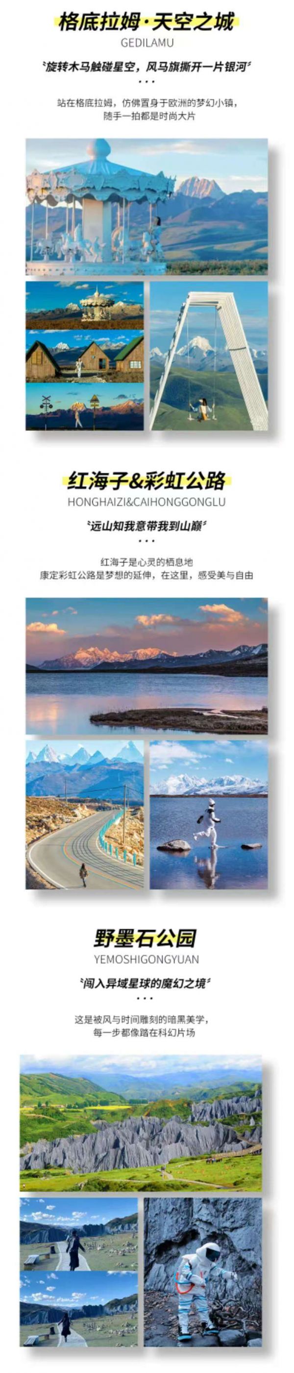 無(wú)人機(jī)+單反旅拍(底片全送+9張精修照片+1條精剪視頻),底片全程不低于40張,無(wú)人機(jī)視頻不低于3條(全車人拍攝旱地拔蔥視頻,晚上領(lǐng)隊(duì)帶大家星空拍攝);