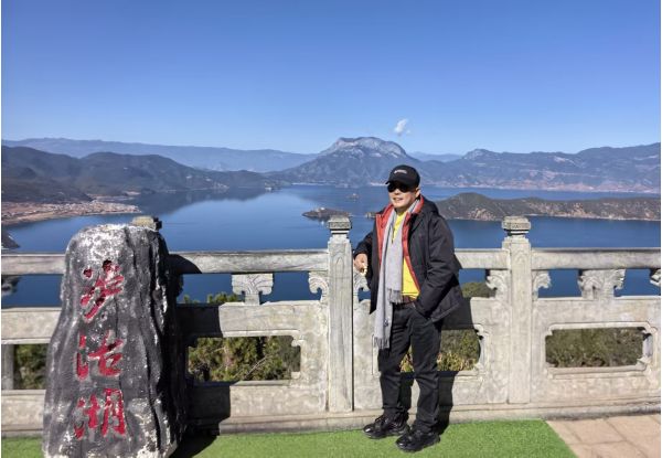 站在山頂,我俯瞰著整個麗江壩子,心中充滿了成就感。