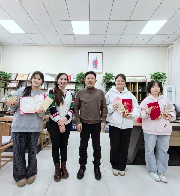 同時(shí),為表彰先進(jìn)、樹立標(biāo)桿,經(jīng)劉寶平老師與張蕾老師、劉景磊老師共同商議,評(píng)選出杜夢(mèng)奇、馬譽(yù)熒、王佳琪三名優(yōu)秀員工,三位老師為獲獎(jiǎng)成員頒發(fā)證書與獎(jiǎng)杯,以表彰他們?cè)?/span>2025年度為工作室發(fā)展作出的突出貢獻(xiàn)。