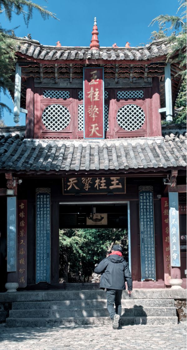 接著,我們奔赴玉柱擎天,這座納西神山峭壁之上,摩崖石刻歷經風霜,字跡卻依舊清晰可辨。