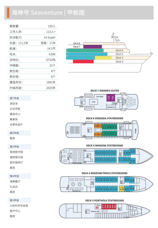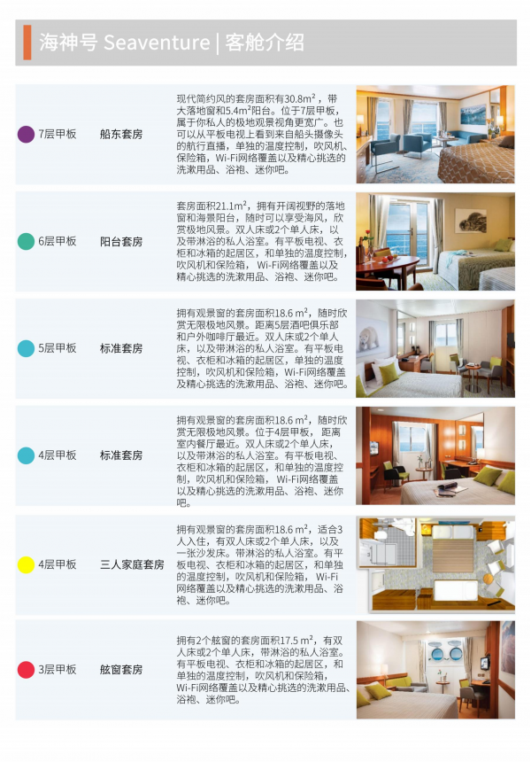 √郵輪設(shè)備設(shè)施和服務(wù)及極地目的地的介紹來(lái)源于參考材料,如果與實(shí)際有出入那么不視作旅行社違規(guī)。