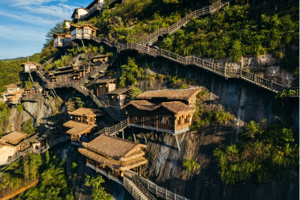 望仙谷位于江西省上饒市廣信區望仙鄉,是一座依托獨特丹霞地貌和峽谷風光,以懸崖民宿、仙俠主題、贛家文化為特色的國家4A級旅游景區。這里將自然奇觀、人文體驗與沉浸式游憩完美結合,被譽為“懸崖上的仙俠世界”。
