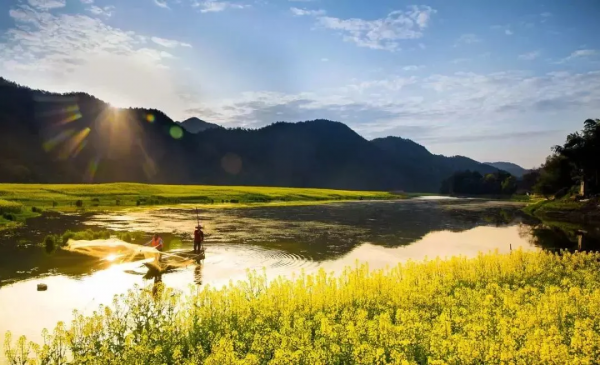 午餐后到達慶源,慶源村素有小桃園之稱,長期與世隔絕,民風淳厚、景色直人,空氣清新不染纖塵,泉水清澈賦含靈氣。油菜花、梨花和桃花同時監開,把慶源人家籠罩在一派“金山、銀海、胭脂云"的最象之中。