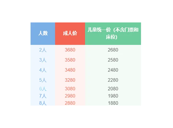 7、 住房說明:產生住宿的活動中,如出現單男單女,盡量安排該客人與同性別團友拼房;如男女一起報名的,如不能同住一間房的,需在報名時備注欄內備注清楚;如不愿拼房,請補齊單房差以享用單人房間。如單人報名要求住一個房間的,需致電客服確認是否能安排,單房差自理。