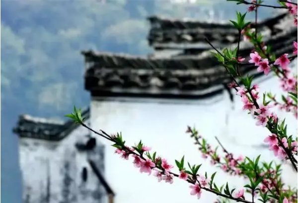 粉墻黛瓦的村落里桃花紅、梨花白,還有那滿山的樹木和曲折幽靜的小路。