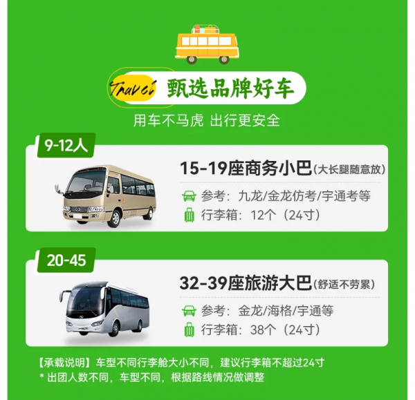 ● 部分景點可能需要游客的個人信息進行門票提前預約(出行攜帶證件需與出票證件一致),如因景區門票售罄等客觀原因導致該景點無法參觀,本公司將為您更換其他景點,所產生的費用多退少補。