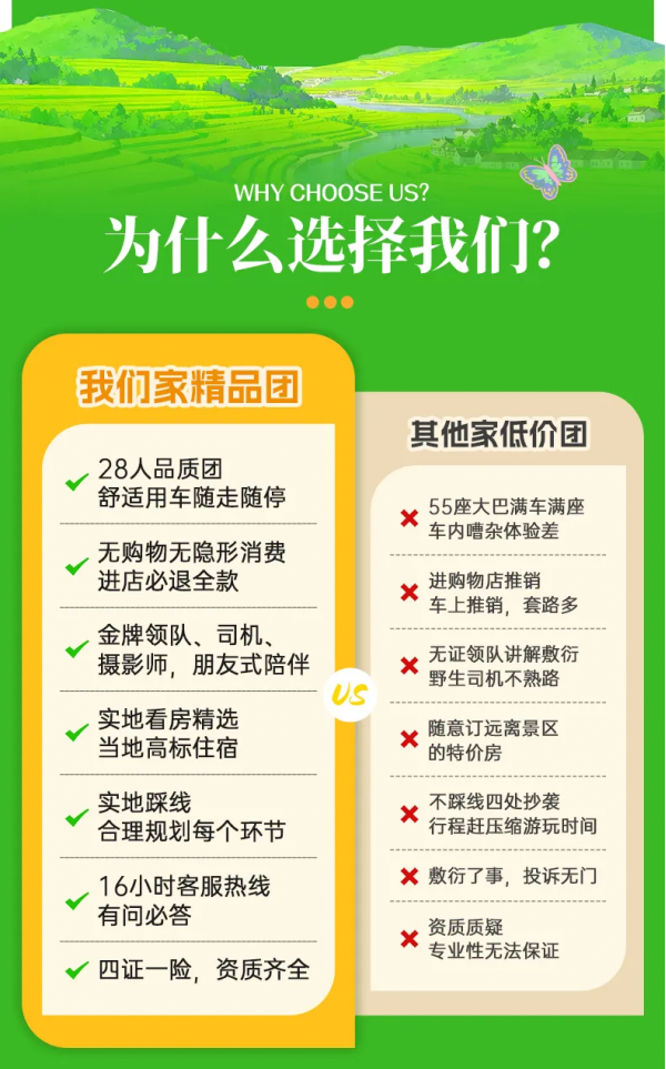 ● 在活動行程中,景區、餐廳、休息區等地存在非本公司安排的購物場所,本公司提醒您,理性消費并索要憑證,如產生消費爭議,將由您與售賣商品的商家自行解決。