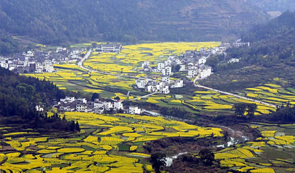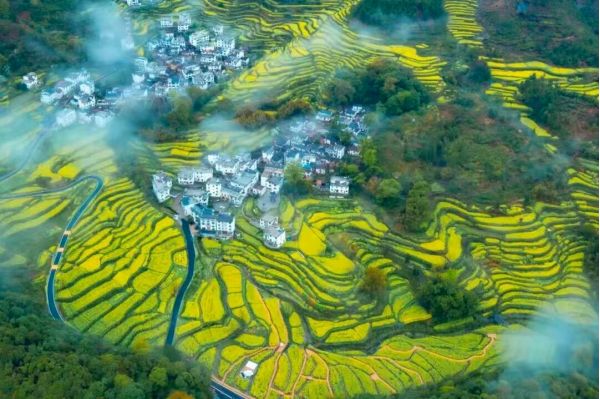 萬(wàn)畝油菜花海在徽州的阡陌間肆意綻放