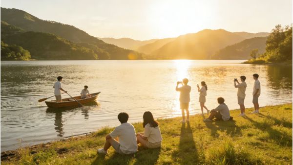 在湖光山色中放松心情,