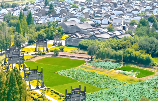 徽州古城——坐落在國家歷史文化名城歙縣縣城徽城鎮(zhèn)中心,千年徽州府治所在地,主體建筑有仁和樓、得月樓、茶樓、惠風(fēng)石坊、徽園第一樓、過街樓、古戲樓等以及鑲嵌其間的古色古香商品住宅樓百余間,是展示和體現(xiàn)徽州文化的重要實物建筑。