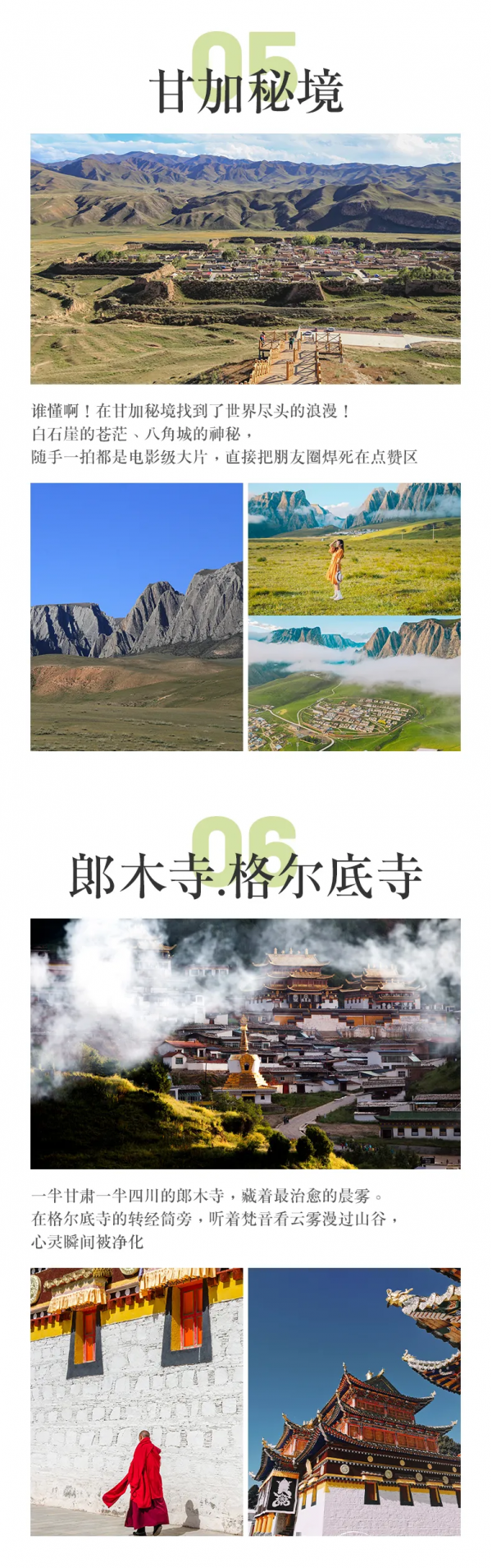 包含甘加秘境門票、格爾底寺門票、扎尕那門票、若爾蓋花湖門票、九曲黃河第一灣門票、蓮寶葉則門票、米拉日巴佛閣門票