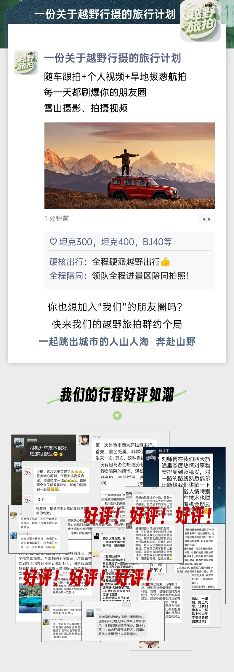 (3)本線路沒有“代購業(yè)務(wù)”,請不要在團隊中或者完團后,請求駕駛員代購任何產(chǎn)品,如有需要請自行篩選、購買。