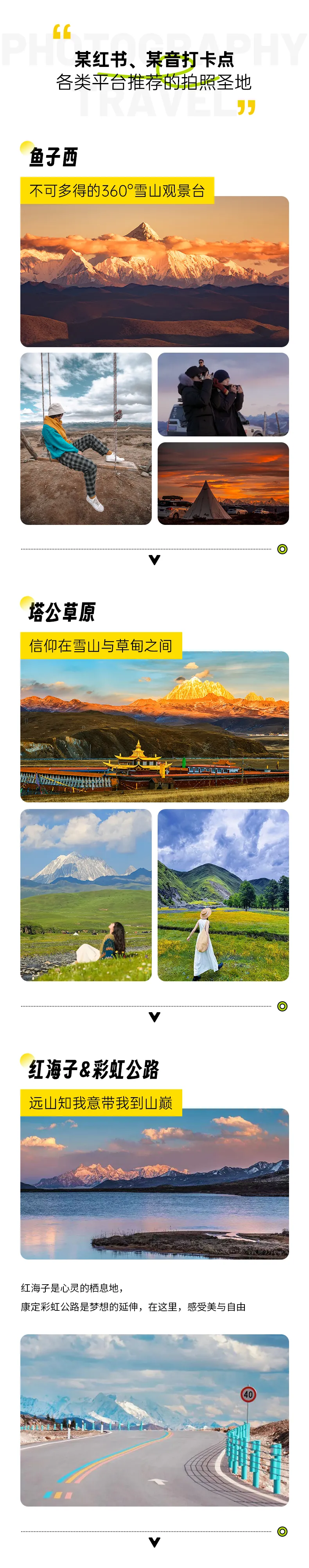 包含四姑娘山雙橋溝門票、墨石公園門票、理塘勒通古鎮套票(包含博物館+講解)、亞丁景區門票、海螺溝門票