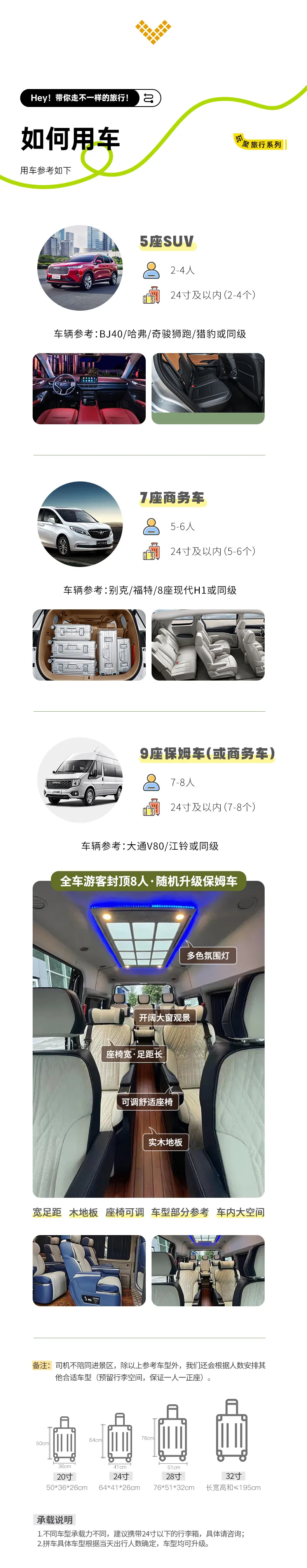備注:車型承載力有限,攜帶行李為24寸或以下行李箱。