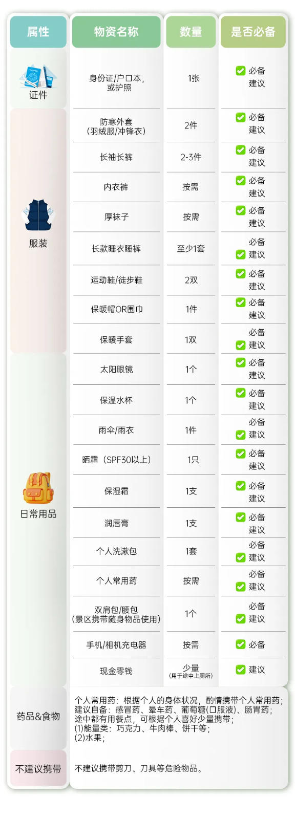(5)長途:景點分散,距離較長。故乘車時間長易疲勞,帶一些零食、飲用水、撲克牌等,途中消遣;