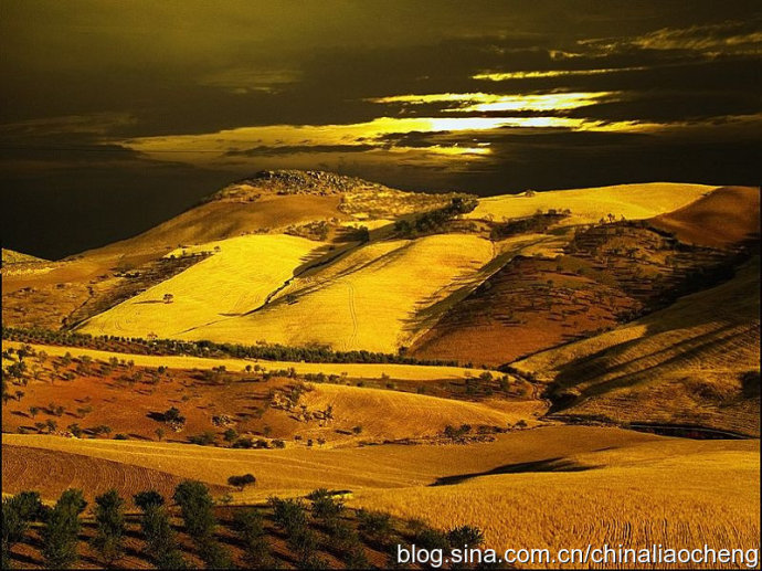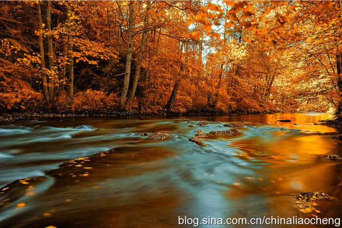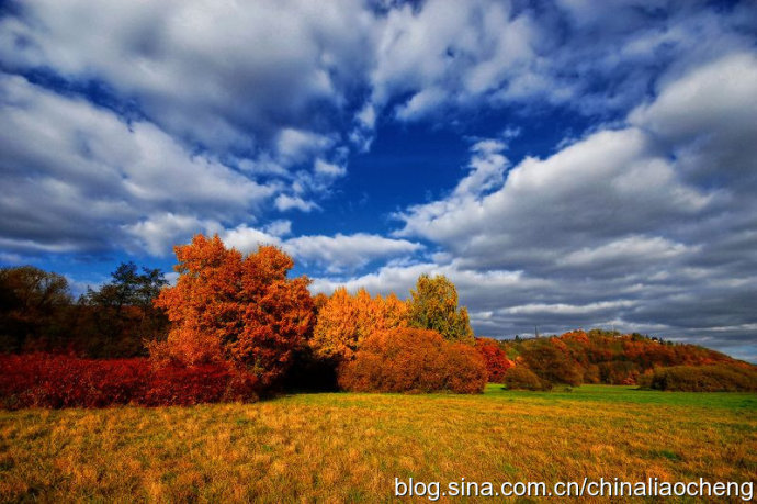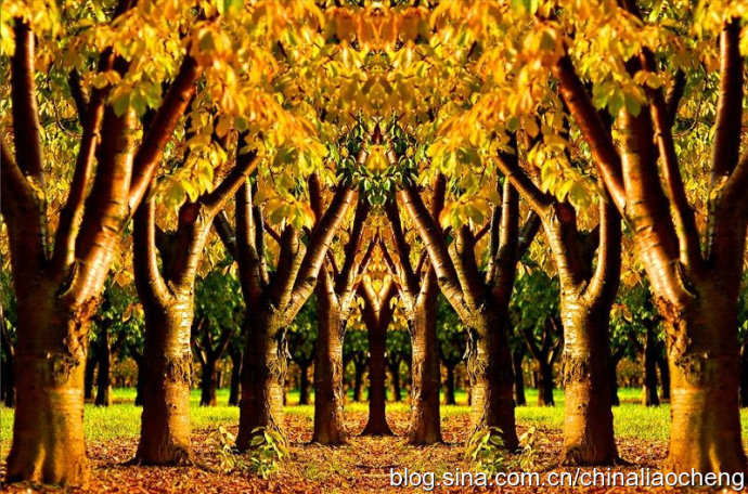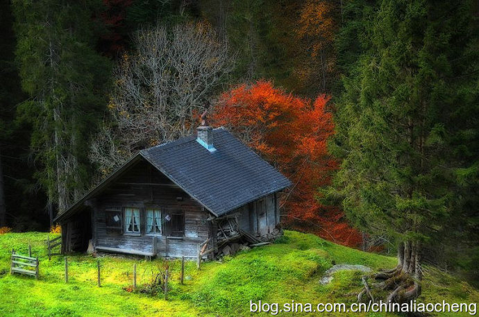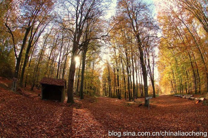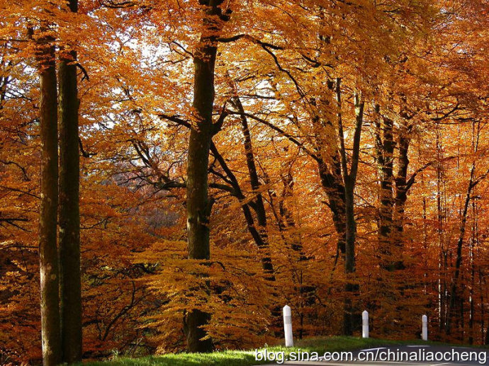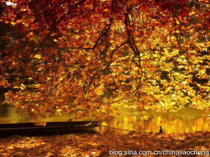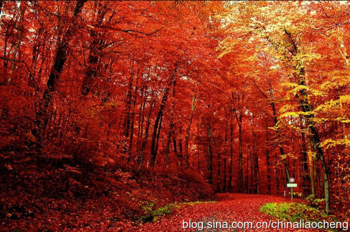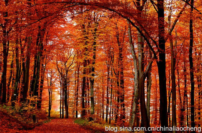 最動人是秋林映著落日。那酡紅如醉,襯托著天邊加深的暮色。晚風帶著清澈的涼意,隨著暮色浸染,那是一種十分艷麗的凄楚之美,讓你想流幾行感懷身世之淚,卻又被那逐漸淡去的醉紅所懾住,而情愿把奔放的情感凝結。