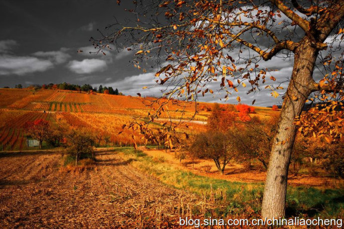 秋天的色,涂撣了春天的“多彩”,涂撣了夏季的“火紅”,染上了一層深褐色。褐色是秋的主色調。秋的到來,天地萬物以此來迎接。褐色讓人產生無限暇想。我不喜歡“多彩”,不喜歡“火紅”,也不喜歡“潔白”,唯獨熱愛褐色。它代表著一種莊重、沉穩,同時它也是人們內心深處的一顆“琥珀”,透明之中裹著一種辛酸。同時褐色也是畫家們在描繪秋景時的最愛。秋天的色調樸素。不雍容華貴,不矯柔造作,以質樸征服了我。